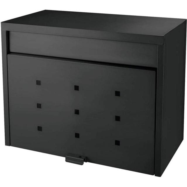 住宅と調和するモダンなデザインです。 幅が広くB4サイズの封筒や回覧板、雑誌がらくらく入ります。 大型の箱や封筒がラクラク入ります。 (投函可能サイズ 約幅340×奥行き260×高さ35mm) 市販の南京錠を取り付けて大切な郵便物を守ります。 (取付穴 内径約φ7mm)