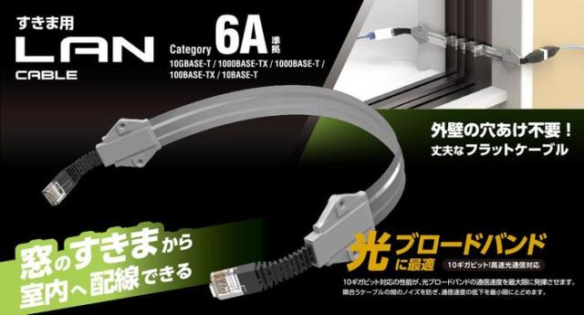 ■商品名:LANケーブル CAT6A準拠 すき間用LANケーブル 屋外対応版 0.4m 薄さ1.5mm フラットケーブル 窓 ドア 隙間 便利 シルバー