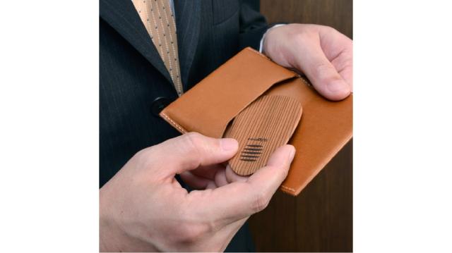普段は平らな形状なので、カードケースや胸元のポケットにスッキリ納まります。