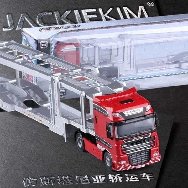 1:50 合金 ダイキャストダブルデッキ トランスポーター フラットベッド トレーラートラック red