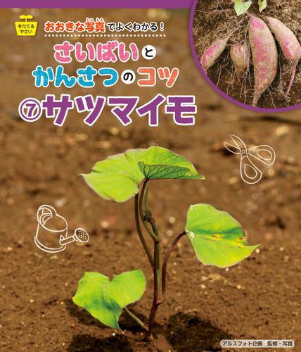 サツマイモの栽培の様子を迫力ある大きな写真で見せていく。失敗しない苗の植え方など栽培のコツや観察のポイントを小学校低学年に向けて易しく伝える。