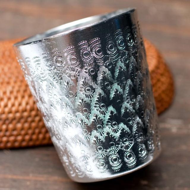 【4点アソートセット】タイの飾りつきエンボス アルミコップ(直径:7cm) / ボウル カップ グラス チャイ ラッシー マグカップ コーヒー インド アジアン食品 エスニック食材