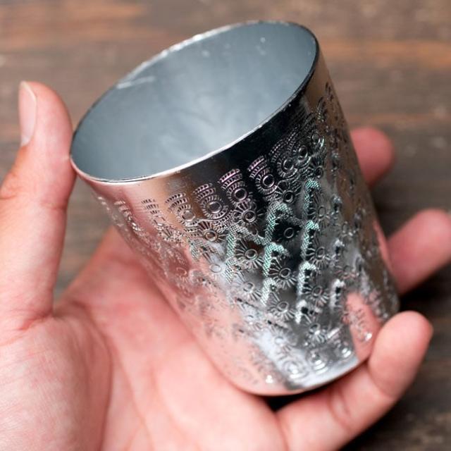 タイならではの美しい装飾がデコボコのエンボスになって入っている美しいコップです。光の加減でエンボスが輝き、とても存在感があります。