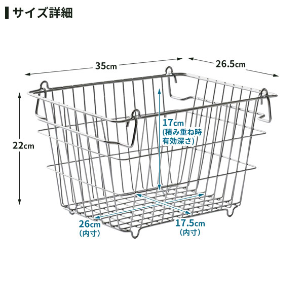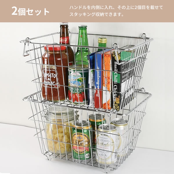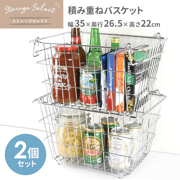 キッチン 収納 ストレージセレクト 積み重ねバスケット 幅35×奥行26.5×高さ22cm 2個セット HB-6080 | かご ワイヤー カゴ ストッカー おしゃれ ワイヤー 金属製 シンプル 素朴 入れ物