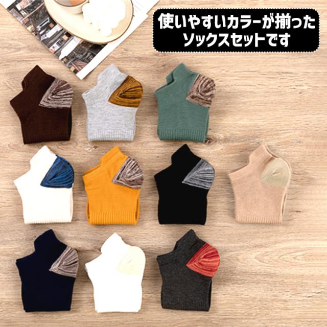 靴下 メンズ くるぶし ツートン ソックス バイカラー 5足セット くつ下 くるぶし丈 ショートソックス ショート おしゃれ 男性 春 夏 秋 ブラック ホワイト グリーン ネイビー ベージュ アイボリー グレー ブラウン