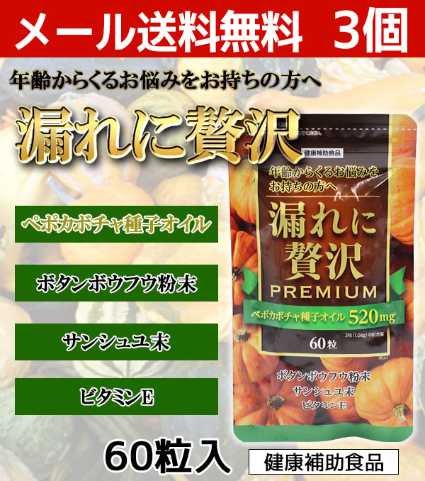 漏れに贅沢 3個セット | ペポカボチャ ボタンボウフウンシュユ ビタミンE 中高年 トイレ 悩み 中央薬品 サプリメント 男性 女性 健康 40代 50代 高齢者 日本製 健康食品 お年寄り 父の日 健康食品 父の日ギフト 健康食品 サプリ サプリメント 食事で不足 尿 にょう といれ