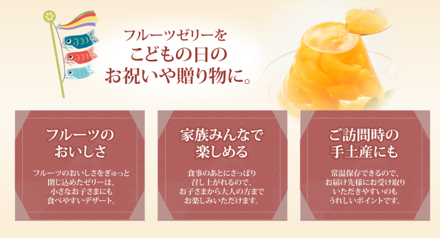いつでも、フルーツの旬の美味しさが楽しめるフルーツゼリーです。