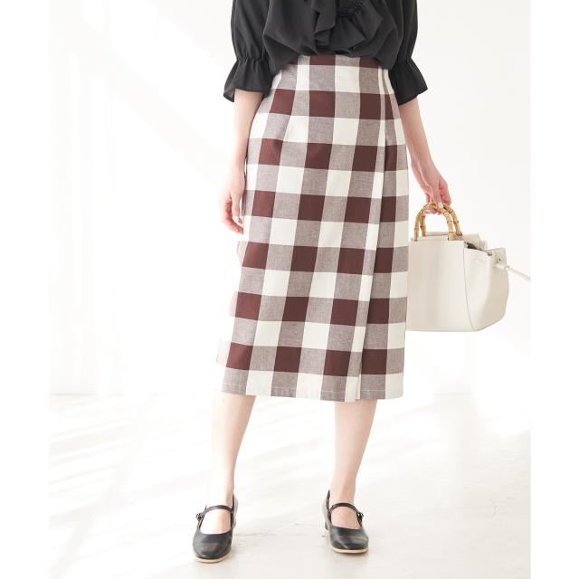 ・ダイナミックなギンガムチェックが目を惹くIラインスカート。