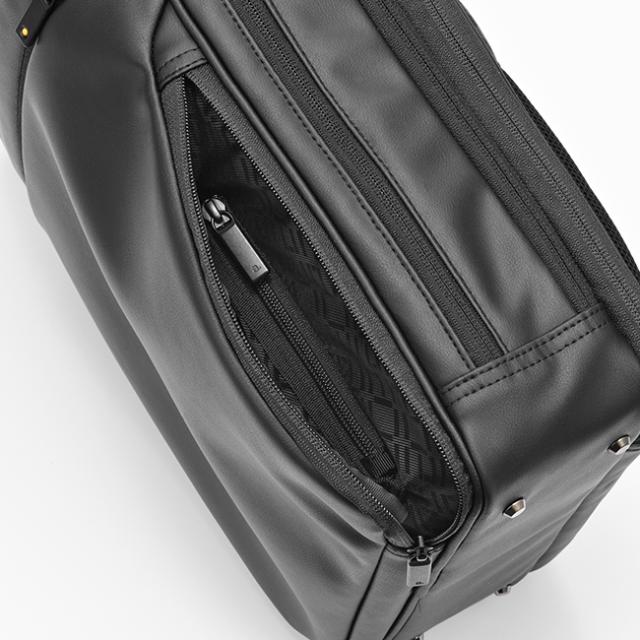 側面ファスナーと本体気室の双方からアクセス可能な2WAYスルーポケット