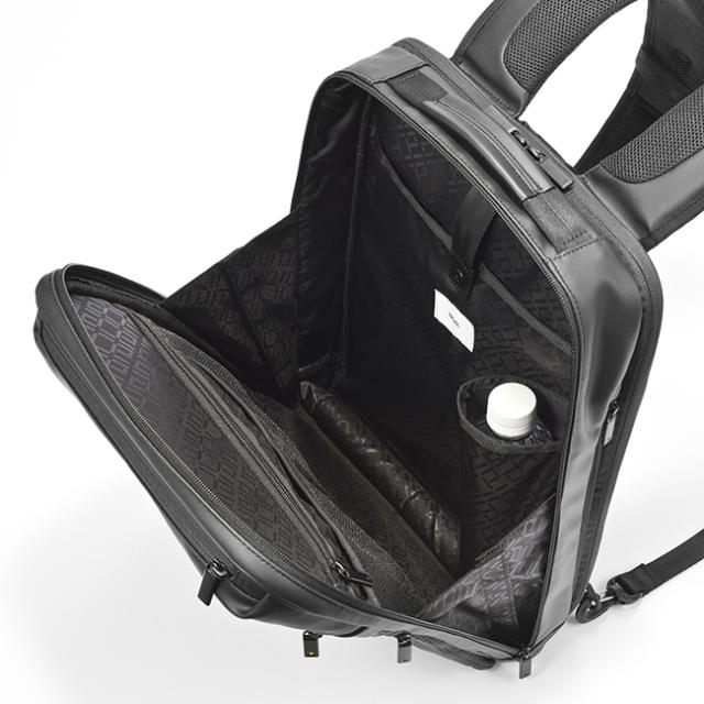 | 毎日の通勤に最適なB4用紙サイズ対応のリュックに、抗菌・抗ウィルス加工のポケットやパーツを採用したニューノーマル時代に向けたモデルが登場。コンパクトなボディからは想像もつかない機能性と収納力。自転車通勤や徒歩通勤はもちろん、電車通勤でその機能を実感していただきたい ビジネスリュックです。 ● B4用紙サイズ対応 ● 本体には、抗ウイルス・抗菌加工を施した『バーテクト?クロス』(注1)を使用 ● フロントポケット下部には抗菌・抗ウィルス加工の生地を使用 ● 15インチサイズ対応の独立したPC気室(参考収納寸法 W36×H25×D2.7cm) ● PC気室にはキズが付きにくいパイル生地を使用 ● PC収納部はL字ファスナーでタテ・ヨコからアクセスが可能 ● 内装に小物収納ポケット ● 『2WAYスルーポケット?』(注2)で内・外両側からアクセス可 ● 折りたたみ傘やペットボトルの収納に最適な『2WAYスルーポケット?』 ● フロントトップに小物収納ポケット ● 小物収納ポケット内にもパイル生地を使用 ● クイックラウンドポケット(注3)の採用 ● 身長に応じたリュックベルトの長さ調整が可能 ● リュック時のズレ軽減でチェストベルトを採用 ● 通気性に優れ、蒸れにくい背面の立体メッシュパッド ● ハンドルには抗ウイルス加工レザーを使用 ● リュックベルトは本体に収納可能 ● キャリーバッグのハンドルに固定可能 |