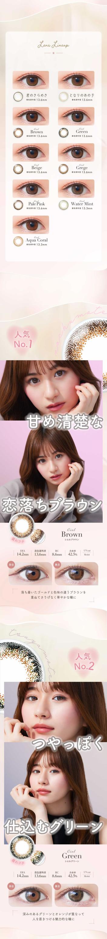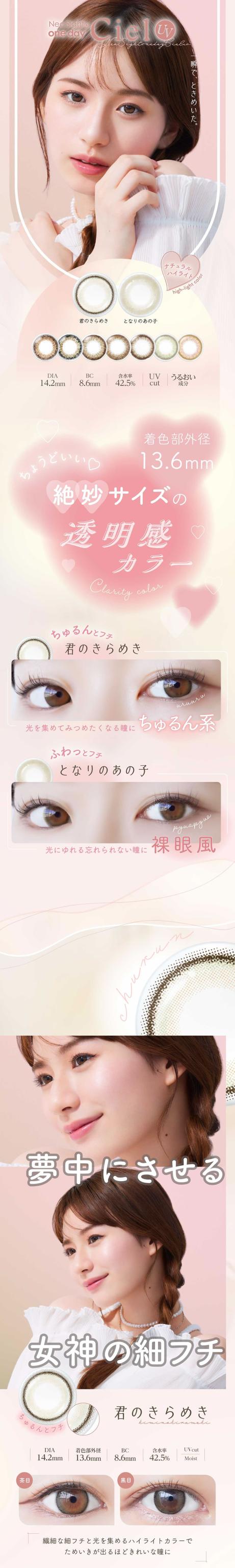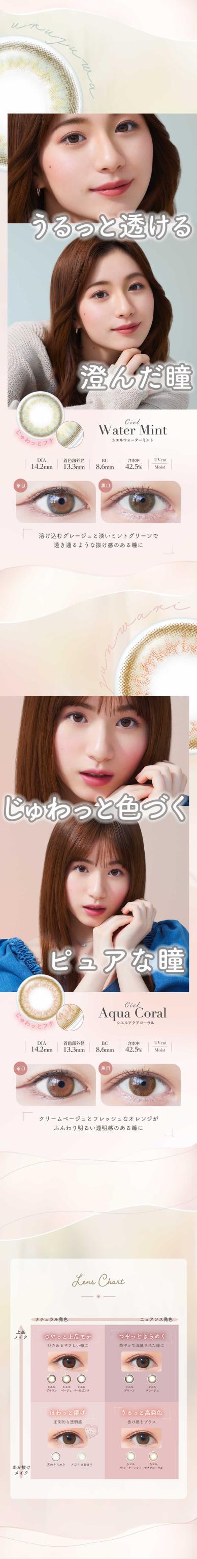 シエルUV■BC 8.6■着色直径 13.6■含水率 42.5%■承認番号 22600BZX00273A01デュウUV■BC 8.8■着色直径 12.8■含水率 58%■承認番号 22600BZX00458A01