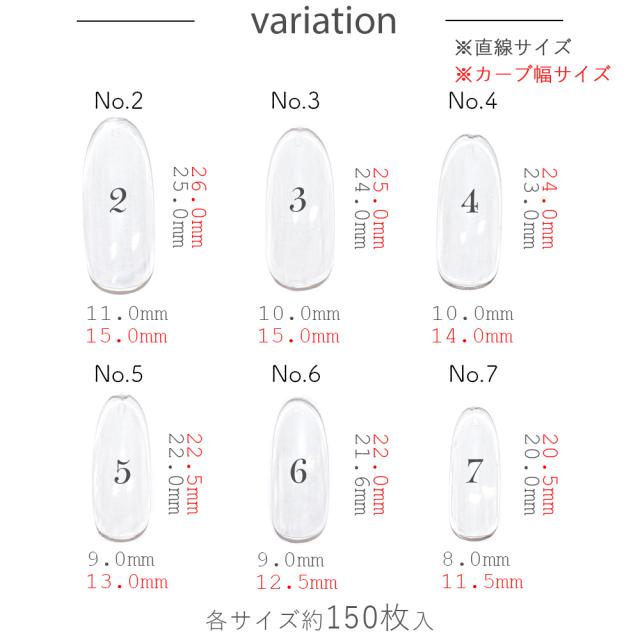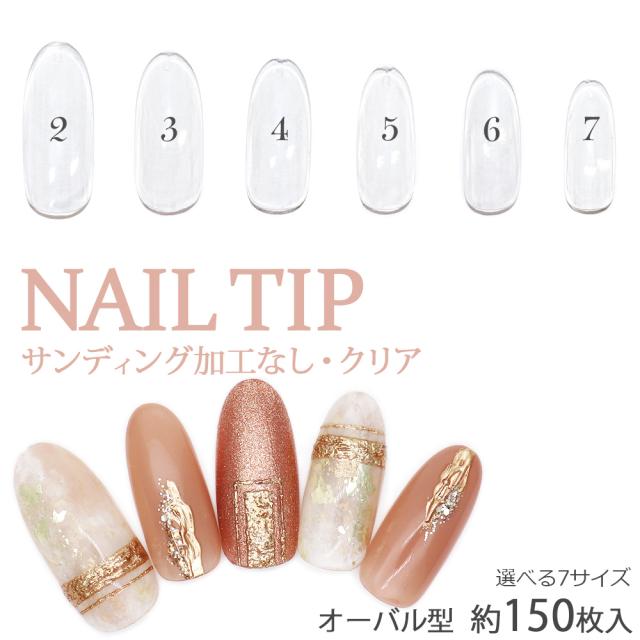 ネイルチップ オーバル型 クリアネイルチップ サンディング加工なし 透明 選べる6サイズ 各約150枚入
