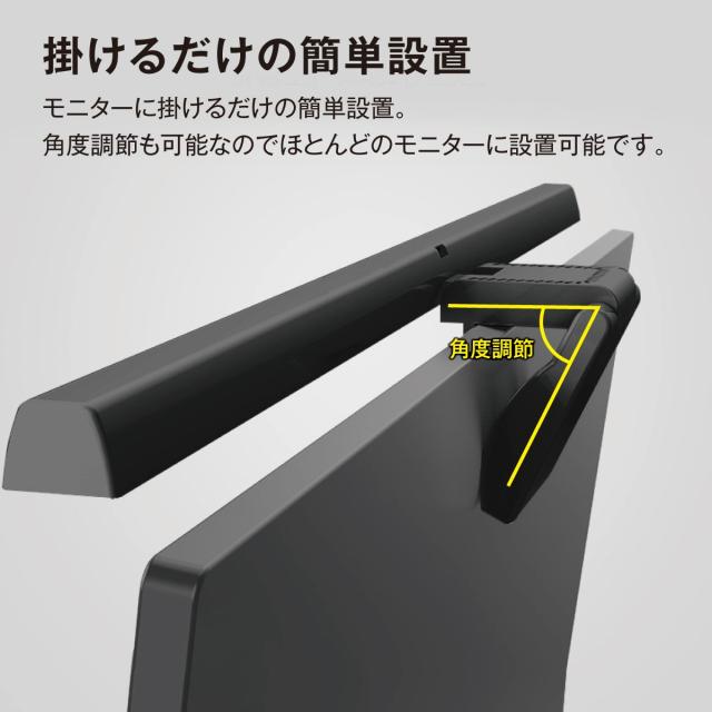【掛けるだけの簡単設置】モニターに掛けるだけの簡単設置。角度調整も可能なのでほとんどのモニターに設置可能です。