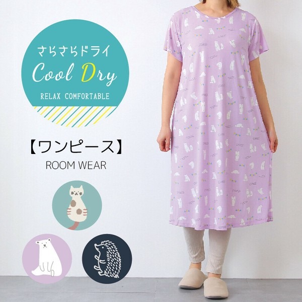 送料無料 ワンピース ルームウェア レディース Tシャツワンピ Tシャツワンピース 冷感 春夏 ドライ DRY さらさら 涼しい