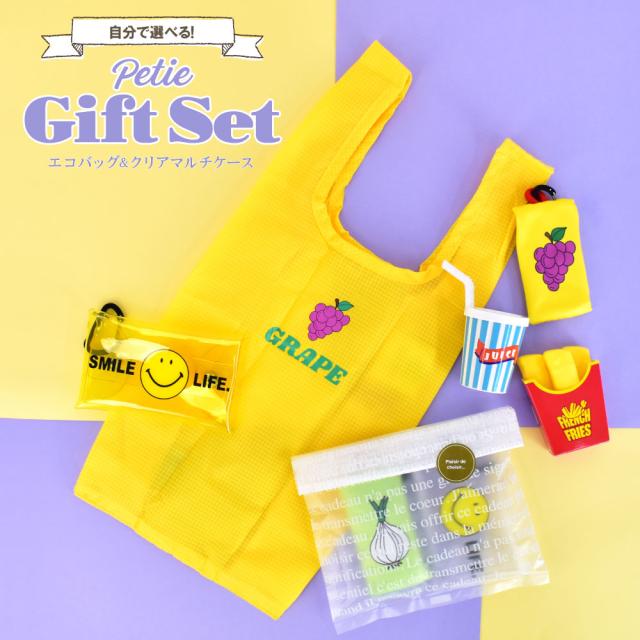 メール便送料無料 ギフトセット (商品込み) エコバッグ Sサイズ クリアマルチケース グッズ セット お買い物 コンビニサイズ ポーチ ペンケース 定期入れ レディース 大人 大学生 高校生 女の子 可愛い かわいい キャラクター 母の日 誕生日 選べる福袋 福袋セット