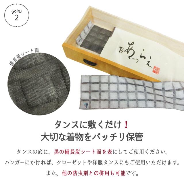 きもの番 2枚セット 備長炭使用 防カビ 除湿 脱臭 調湿 くり返し使える 約24cm×102cm タンス敷き 再生可能 リサイクル 洋服箪笥 衣装ケース クローゼット シート 不織布 B型シリカゲル 衣替え 収納 保管 保存 衣類 和服 着物 帯 洋服 耐久 便利 お手軽
