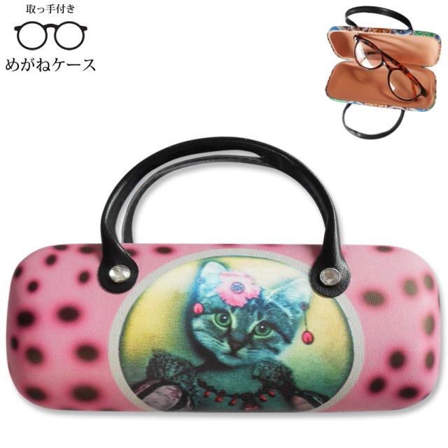 訳あり 送料無料 めがねケース メガネケース ねこ ネコ 猫 おしゃれキャット 取っ手付き 持ち手 ペンケース 激安 アニマル ピンク ドット キラキラ ビジュー 眼鏡ケース 眼鏡入れ 小物入れ アメリカンショートヘア かわいい ハードケース 耐久性