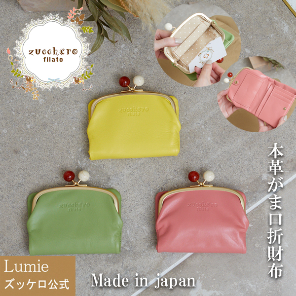 本革 財布 レディース 二つ折 プレゼント ズッケロ 日本製 国産 がま口 折財布 二つ折り コンパクト 小銭入れ ミニサイフ かわいい 軽い 小さい 小さめ ミニマル 実用的 ギフト クリスマス サライ lumie リュミエ 58058