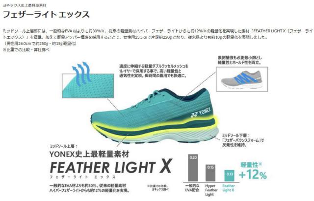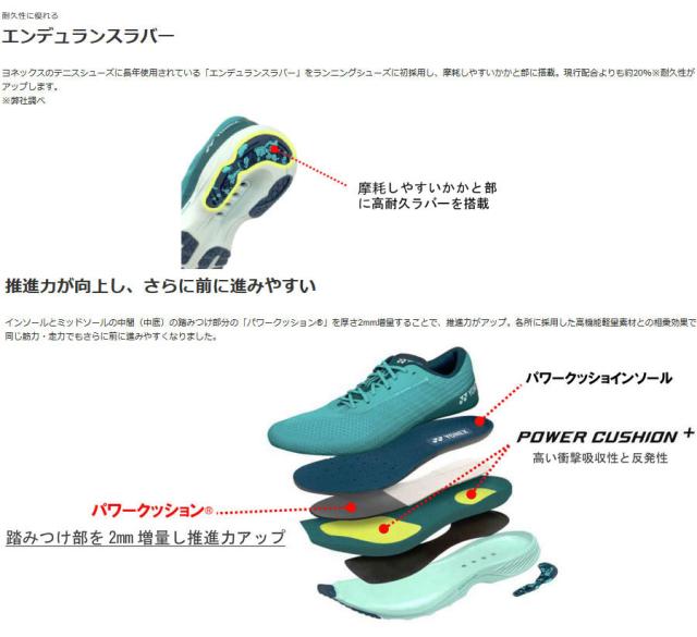 ミッド・アウトソール:パワークッションプラス、パワークッション、3Dパワーカーボン、フェザーバウンスフォーム、トウライト設計