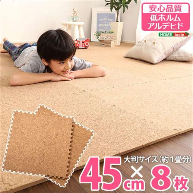 ■商品名:ジョイントコルクマット 8枚セット Etle 大判45cm サイドパーツ付 安心の低ホルムアルデヒド 防音 保温 おしゃれ インテリア ナチュラル