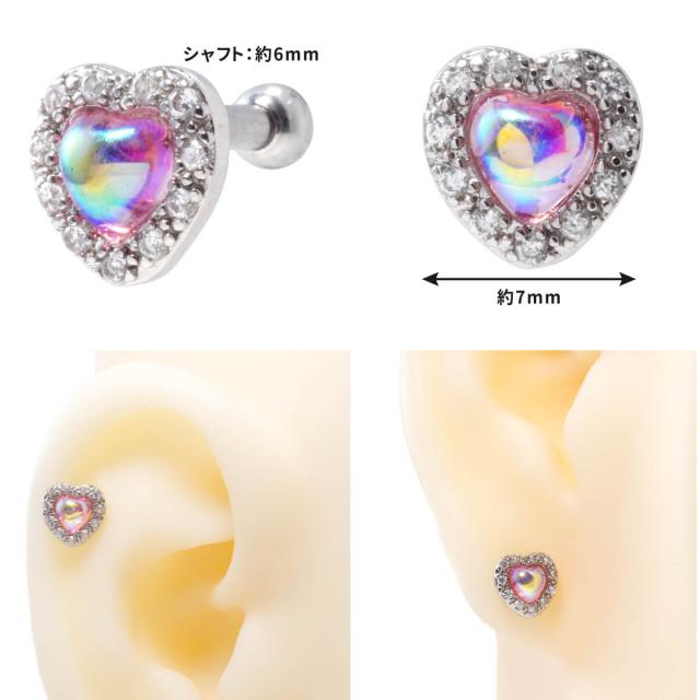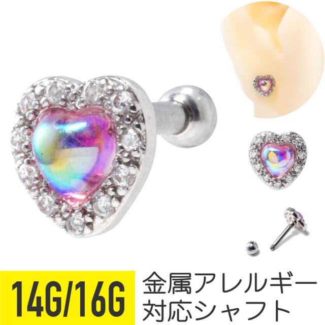 オーロラ ハート ストレートバーベル 14G 16G サージカルステンレス イヤーロブ ヘリックス 軟骨ピアス ボディピアス オーロラ ハート