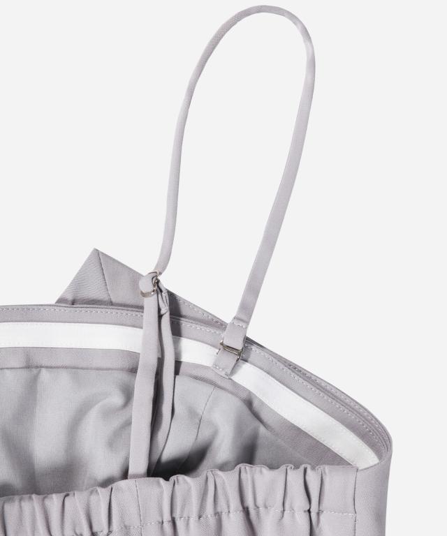 ベアトップのジャンプスーツは肩紐ベルトやリボンベルトの取り外しが可能。