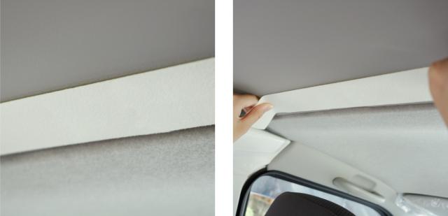 シート上部に面ファスナー(凸面)が付いているので、すぐに車内へ取り付けることができます。面ファスナーが、凸面になります。また、用途に合わせて取り付け場所の移動も簡単です。