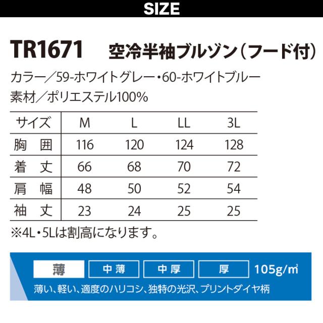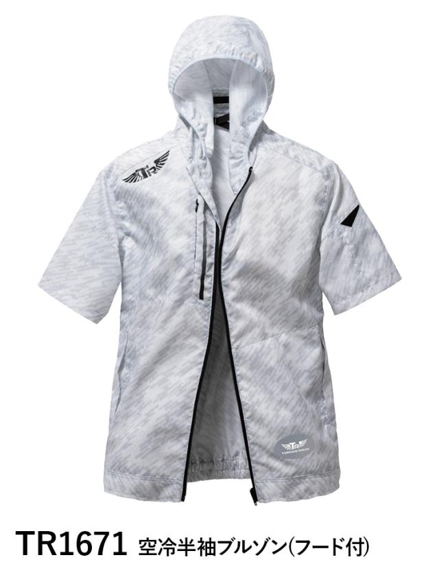 トルネードラカン 空冷半袖ブルゾン TR1671 ※服単品 ファンなし ポリエステル100% 薄地 サイドバックファン UVカット 楽ポケ 空調 空冷服 冷却服 作業着 電動ファン用ウェア 熱中症対策 日新被服