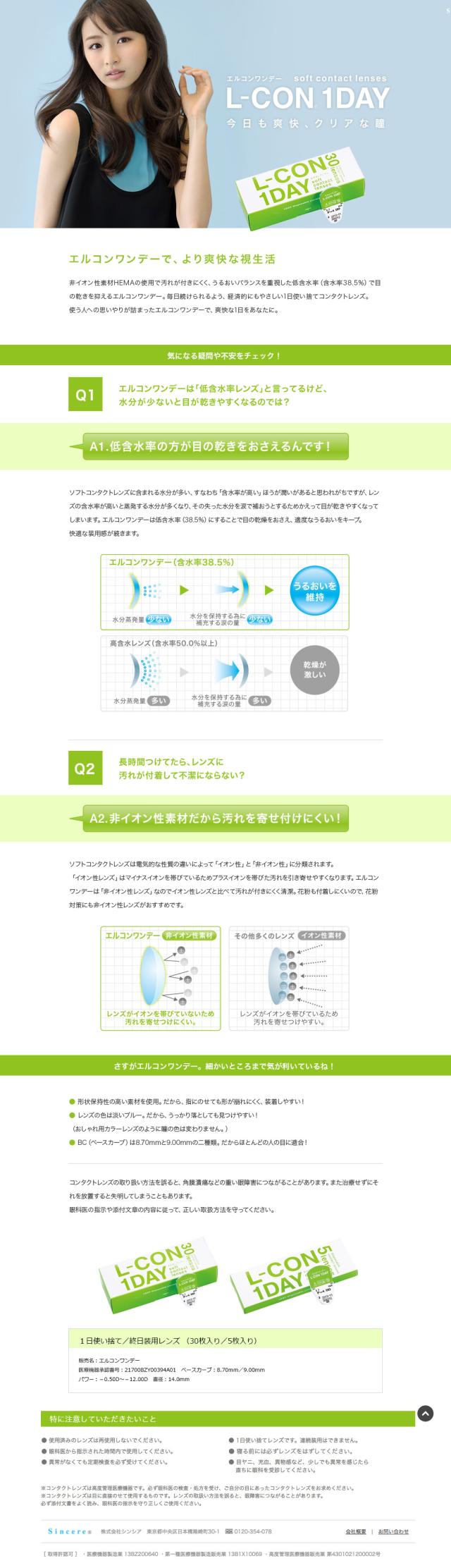 「エルコンワンデーで、より爽快な視生活」非イオン性素材HEMAの使用で汚れが付きにくく、うるおいバランスを重視した低含水率(含水率38.5%)で目の乾きを抑えるエルコンワンデー。毎日続けられるよう、経済的にもやさしい1日使い捨てコンタクトレンズ。 使う人への思いやりが詰まったエルコンワンデーで、爽快な1日をあなたに。