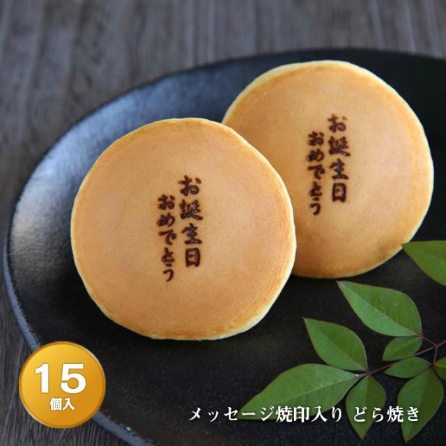 お誕生日おめでとう メッセージ焼印入どら焼き 暁 小倉あん 15個入り 送料無料(北海道 沖縄除く)老舗 和菓子 お菓子 和スイーツ ギフト 贈り物 御祝 お祝い 長寿祝 百寿祝 白寿祝 バースデー プレゼント 父親 母親 祖父 祖母 子供 孫 おかし どらやき