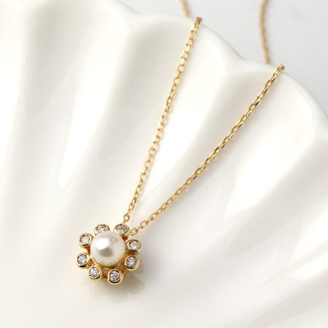 K18 天然 ダイヤ あこやパール ネックレス 上品 普段使い 高級感 大人 ベーシック