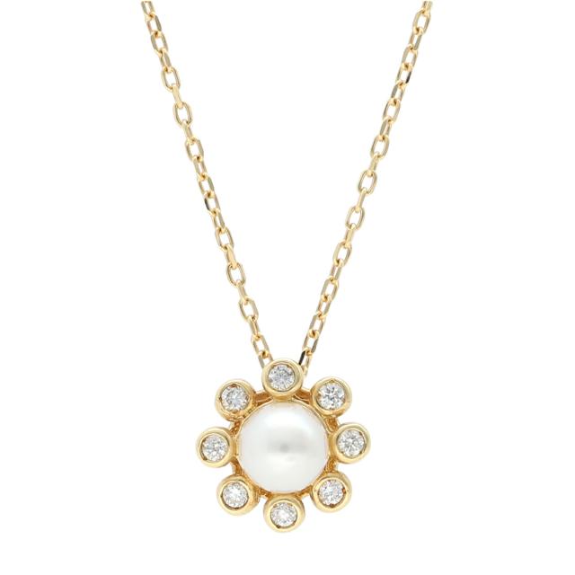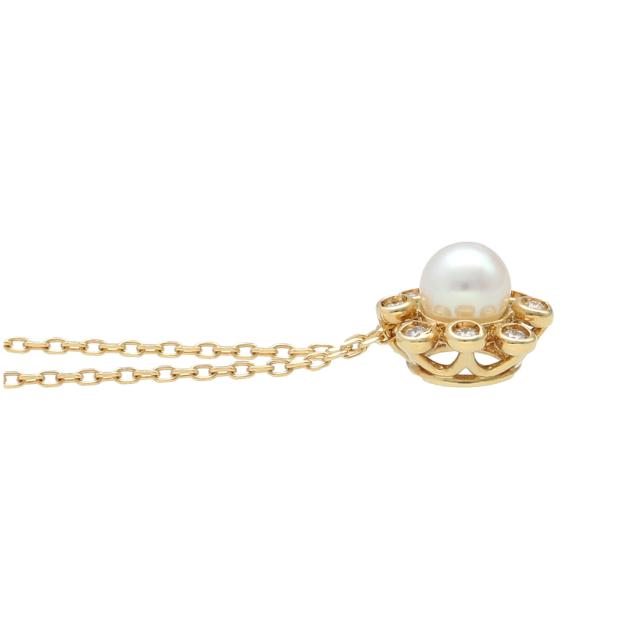 K18 ゴールド あこや真珠 ダイヤモンド ペンダント
