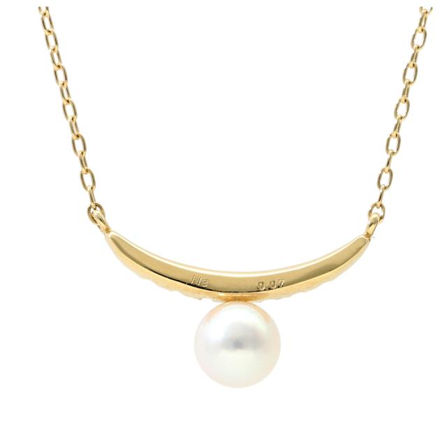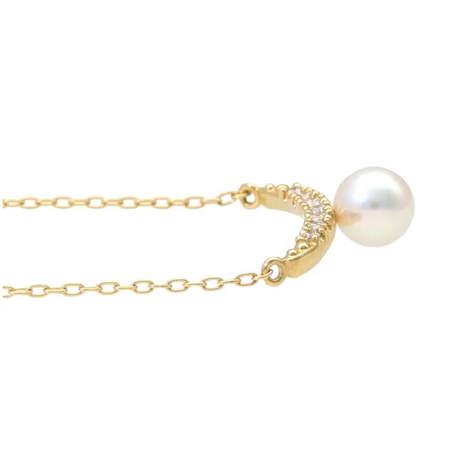 K18 ゴールド あこや真珠 ダイヤモンド バー ペンダント