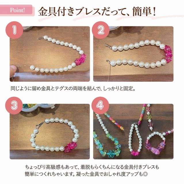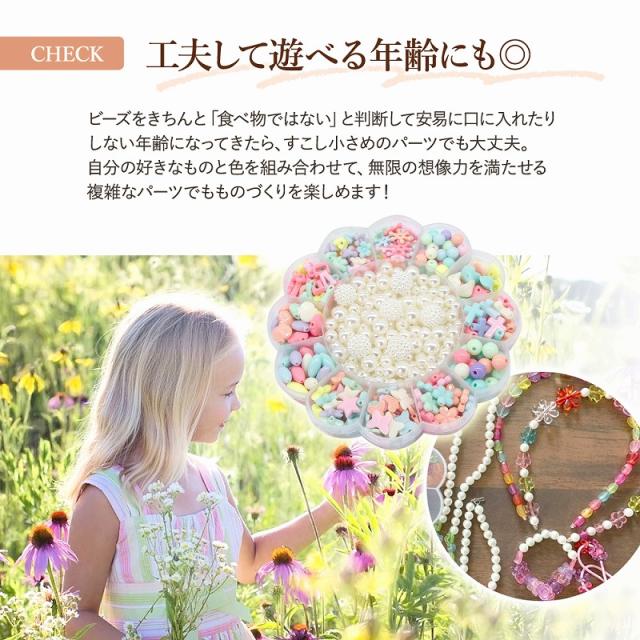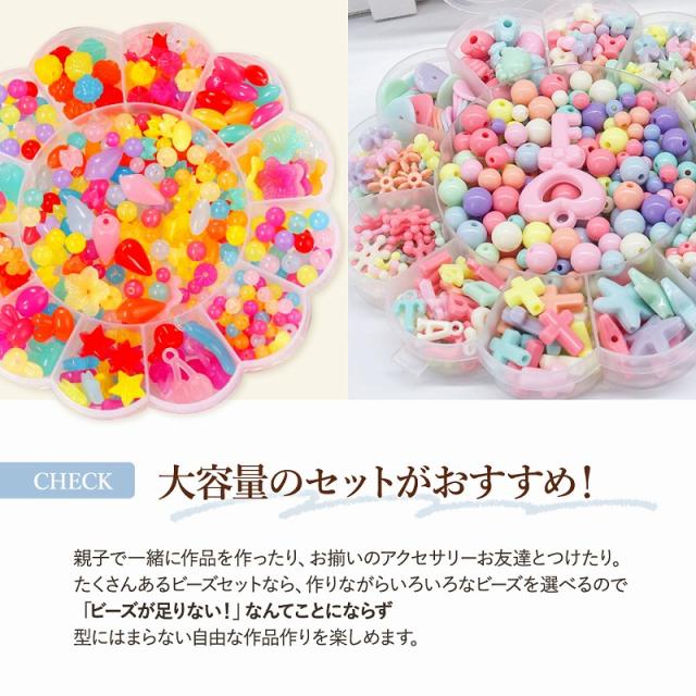 かわいい洗練されたビーズをセットにしているので、デザインや絵が苦手な子でも、組み合わせるだけで統一されたデザインのアクセサリーが簡単に作れちゃいます。