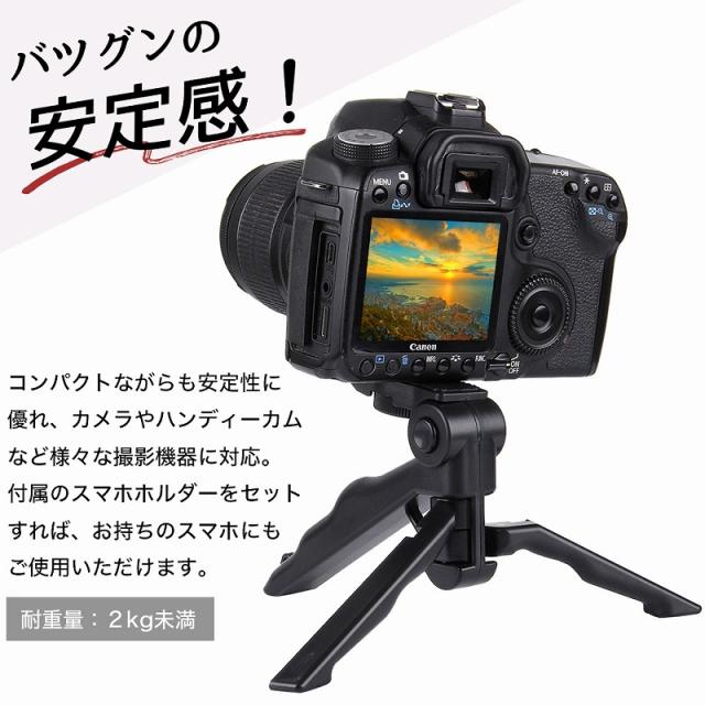 | 主な仕様 | 三脚とスマホホルダーのセット ハンドグリップ カメラやハンディカム、様々な撮影機器に対応 |
