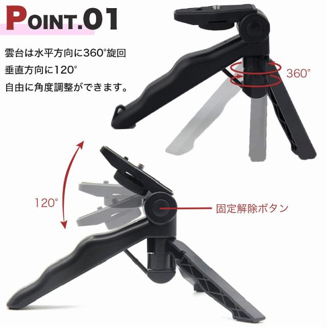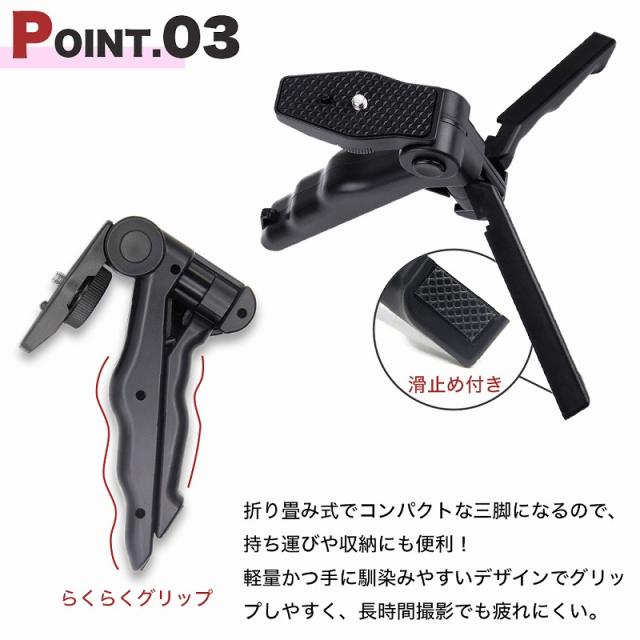 ハンドグリップ 三脚 スマホホルダー ジンバル 雲台 コンパクト セット 2way ブラック iPhone カメラ ビデオ 一眼レフ GoPro 運動会 agesugi_ska