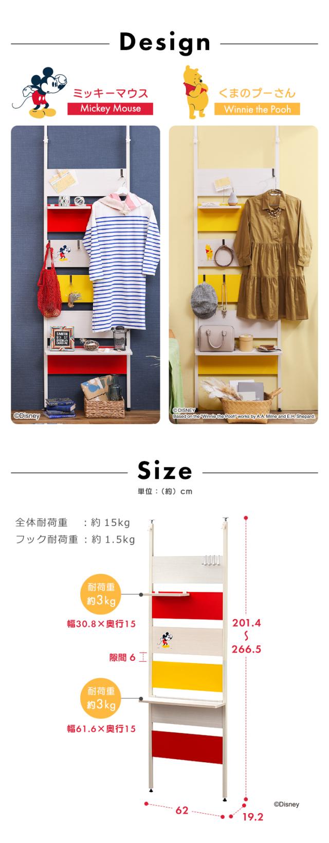 ★レビュー投稿でポイント還元★ ラック ウォールラック 壁面収納 つっぱり棚 ウッドウォールラック ハーフ棚板付き WLR-HT62 ミッキーマウス くまのプーさん ハンガー 棚 一人暮らし ディズニー 子ども部屋 子供部屋 アイリスオーヤマ 送料無料