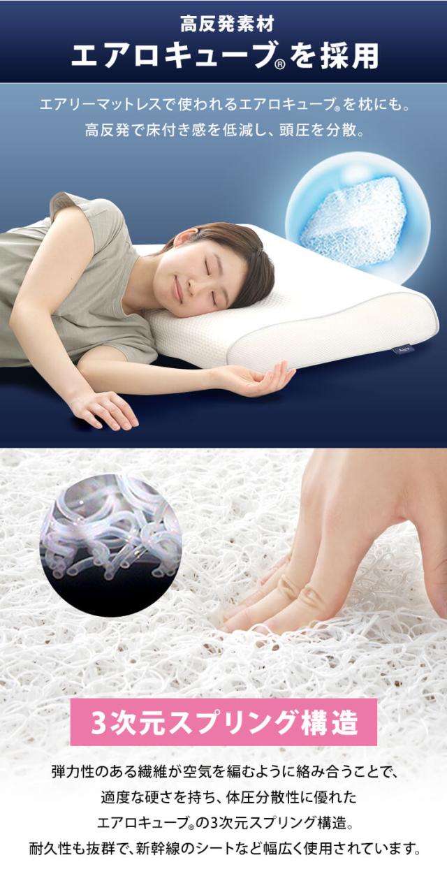 エアロキューブ(R)+エアタッチ(R)の2層構造で頭をしっかり支え、