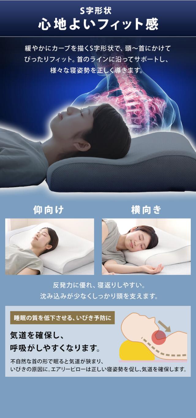 ★全品対象250円offクーポン★ 枕 高反発 低反発 ふつう やわらかめ 横向き寝 2層構造 S字形状 フィット 洗える 清潔 抗菌 防臭 通気性 蒸れにくい オールシーズン マクラ まくら 寝具 プレゼント 実用的 ギフト アイリスオーヤマ エアリーピロー Airy APLS-43 APHS-43 *