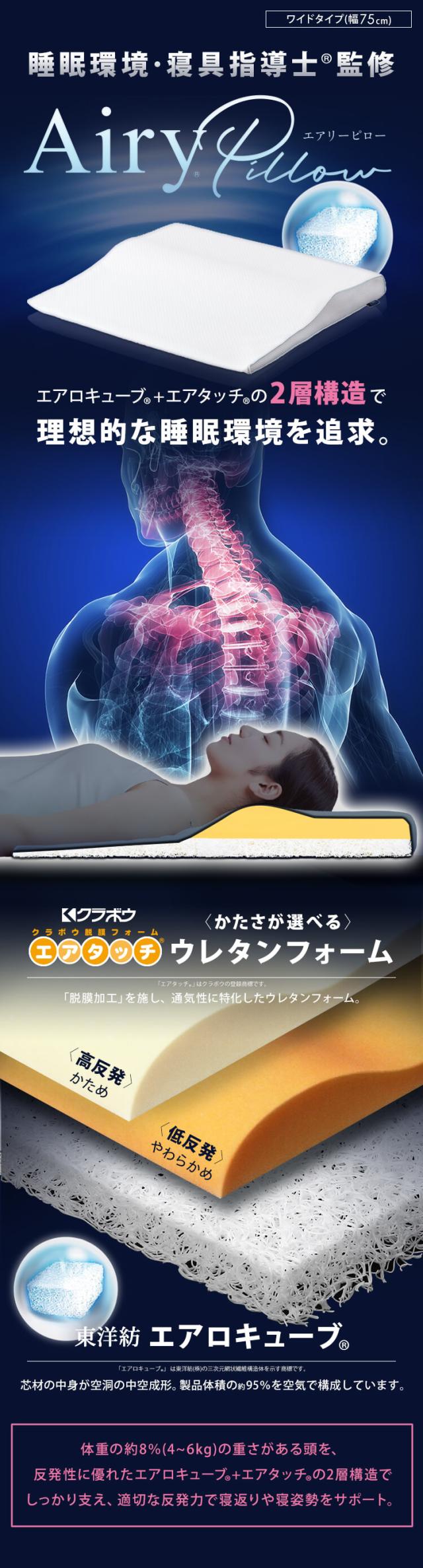 ★全品対象250円offクーポン★ 枕 まくら 高反発 低反発 選べる硬さ アイリスオーヤマ * エアリーピロー APLW-75/APHW-75 二層 いびき 首 肩 ワイド 幅広設計 幅75cm 洗える 通気性 抗菌防臭 制菌 耐久性 ふつう やわらかめ エアロキューブ Airy 新生活