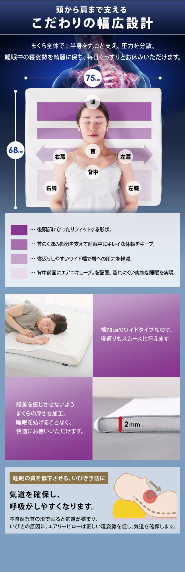 エアロキューブ(R)+エアタッチ(R)の2層構造で頭をしっかり支え、