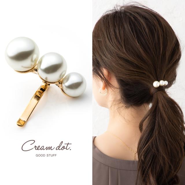 大きさの異なる艶めくパールを3つ連ねたポニーフック。