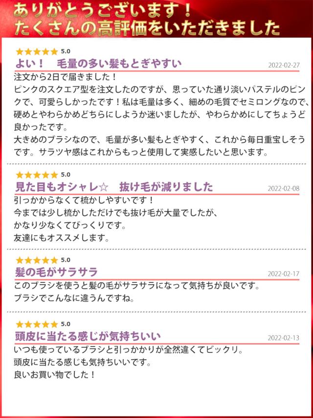 - 軟毛ロングなので迷ったんですがやわらかめでちょうど良かったです。 絡まりをとるのがいつも大変でしたがこのブラシでとかしたらすぐ梳けました。抜け毛が少なくすんで嬉しいです。