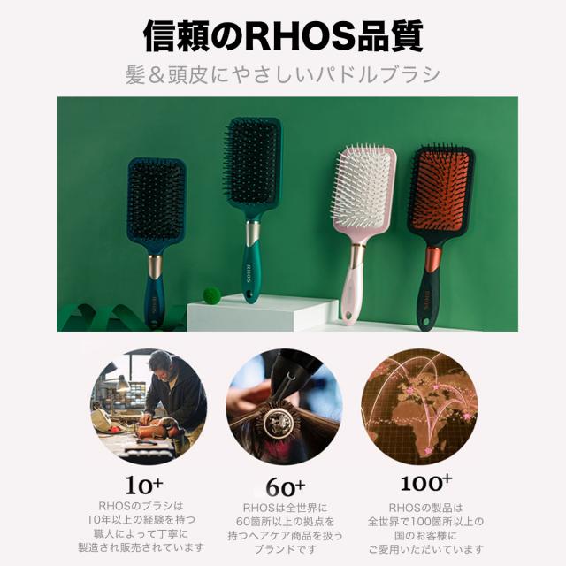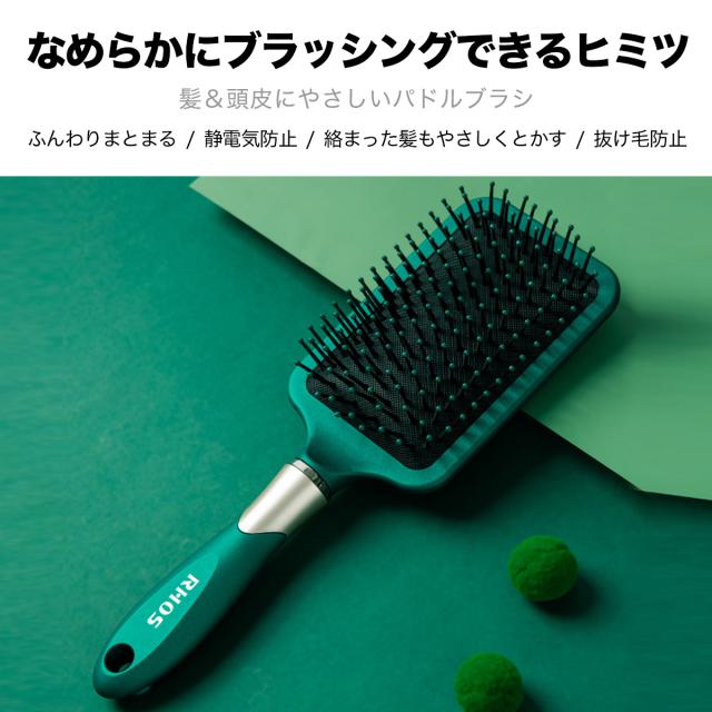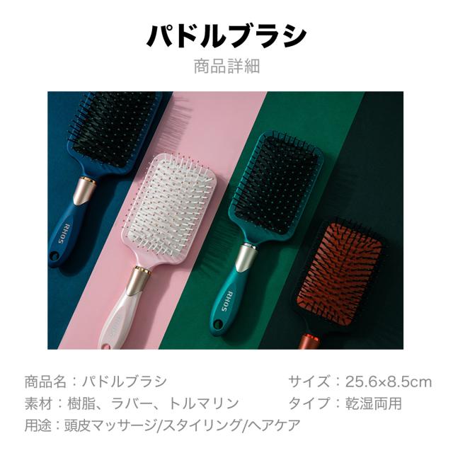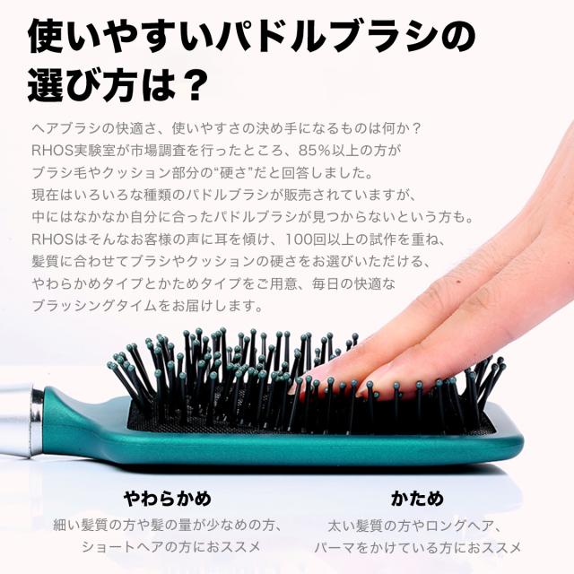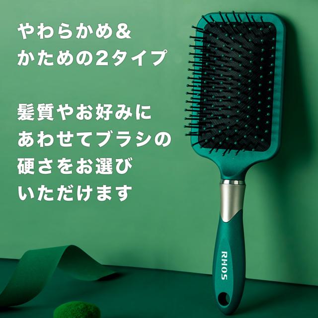 [ブランド]RHOS[取り扱いカラー]グリーン、ピンク、ブラック、ブルー[硬さ]やわらかめ細い髪質の方や髪の量が少なめの方、ショートヘアの方におススメかため太い髪質の方やロングヘア、パーマをかけている方におススメ[サイズ]25.6cm×8.5cm