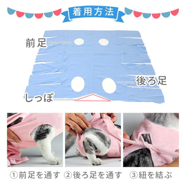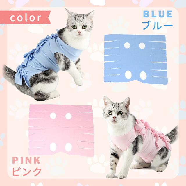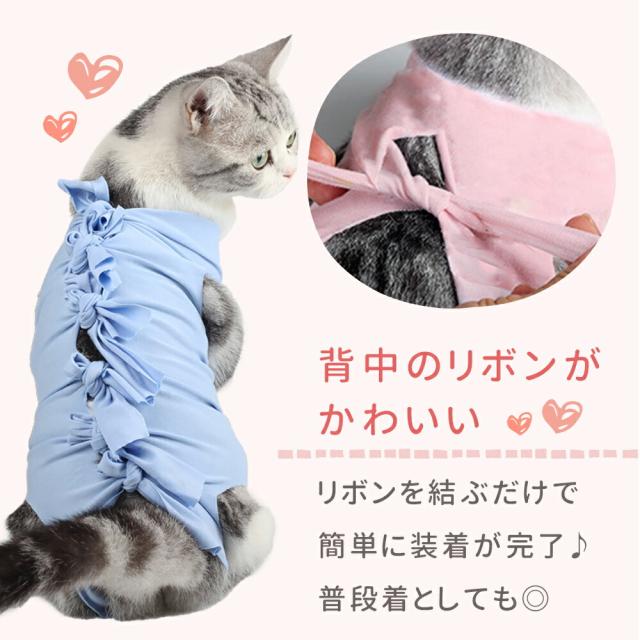 猫/術後服/術後ウェア/エリザベス/服/ネコ/傷/舐め/防止/介護服/避妊/避妊手術/開腹手術/去勢/乳腺腫瘍/ウェア/キャットウェア/術後/手術/皮膚/離乳期/怪我/脱毛保護/犬/イヌ/綿100%/伸縮/リボン/かわいい/着脱/簡単/S/M/L/ブルー/ピンク/ねこちゃん/わんちゃん/ペット/ペット用品/介護用品/エリザベスカラー/犬猫の服/猫の術後服/背中開き/メス/オス/猫手術後服/猫用/術後着/傷口皮膚保護/保護服/傷口保護/手術後/ペット洋服/おしゃれ/傷舐め防止/術後着ウェア/ネコの服/部屋着/ルームウェア/エリザベスカラーの代わりに/伸縮性/
