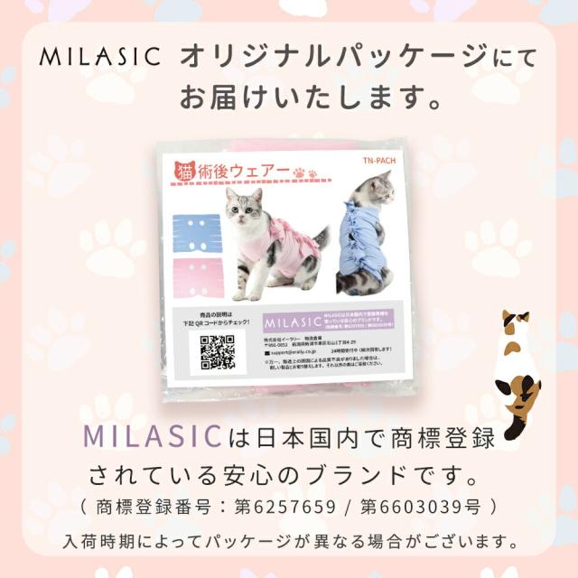 猫 術後服 術後ウェア エリザベス 服 ネコ 傷 舐め 防止 介護服 避妊 避妊手術 開腹手術 去勢 乳腺腫瘍 ウェア キャットウェア 術後 手術 皮膚 離乳期 怪我 脱毛保護 犬 イヌ 綿100% 伸縮 リボン かわいい 着脱 簡単 S M L MILASIC TN-PACH