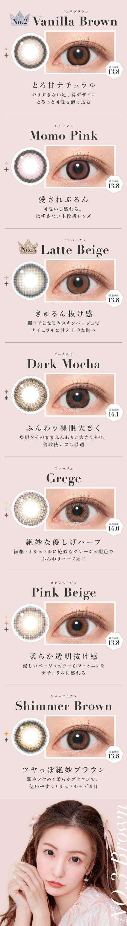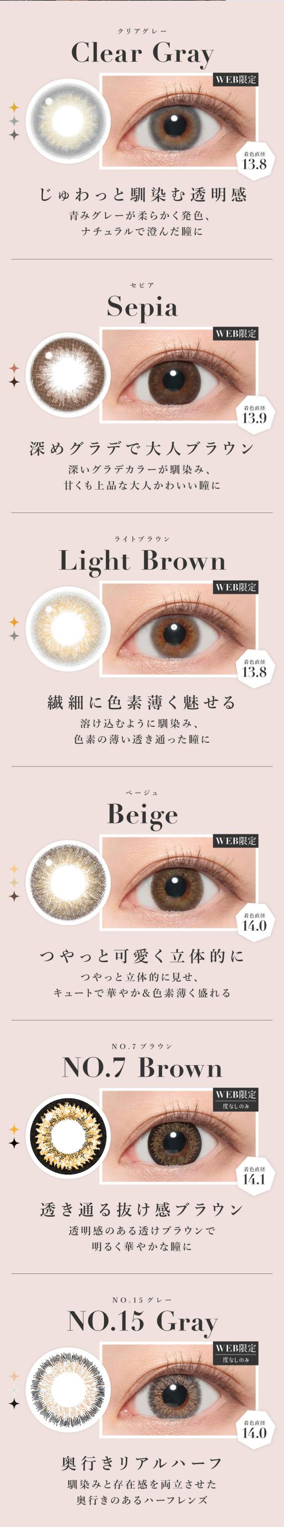 | カラー | No.1チョコ【613】 No.3ブラウン【614】 No.5ブラック【615】 No.6ブラウン【616】 No.7ブラウン【617】 No.9ブラウン【618】 No.14ヘーゼル【619】 No.15グレー【620】 ピンクベージュ【621】 クリアグレー【622】 ライトブラウン【623】 シマーブラウン【624】 グレージュ【625】 ベージュ【626】 ダークモカ【627】 セピア【628】 モモピンク【1412】 バニラブラウン【1413】 ラテベージュ【1414】 バターブラウン【1568】 プルモグレー【1569】 ラメブラウン【1938】 |