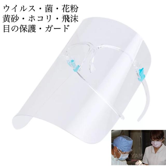 3 フェイスシールド メガネ サングラス 医療用メガネ ガード 大人用 接客業 飛沫防止 男女兼用 メガネ併用可 花粉症 透明フレーム ウィルス対策 ロング