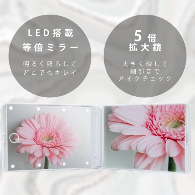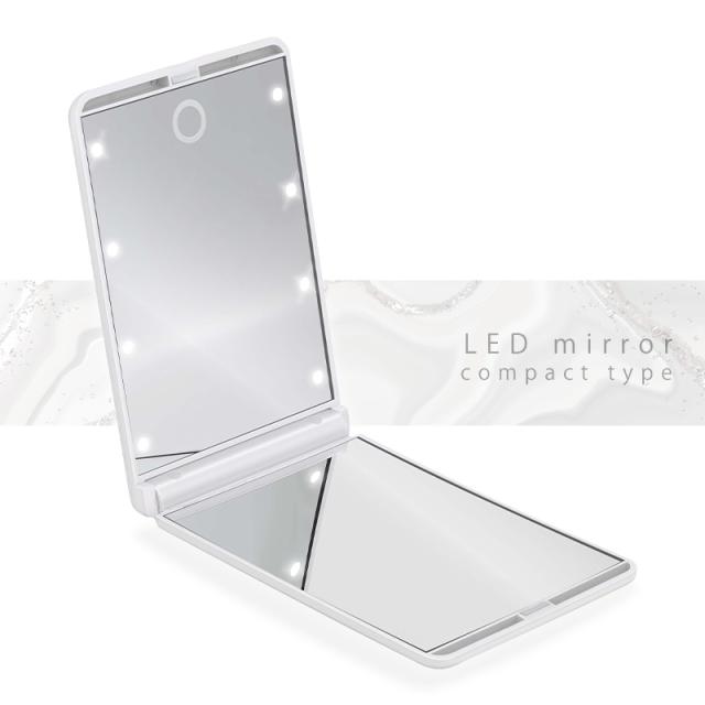 女優ミラー 折りたたみミラー コンパクトミラー コンパクト LEDミラー ライト付き LED 鏡 化粧直し 手鏡 拡大鏡 ミラー かわいい おしゃれ 軽量 折りたたみ式