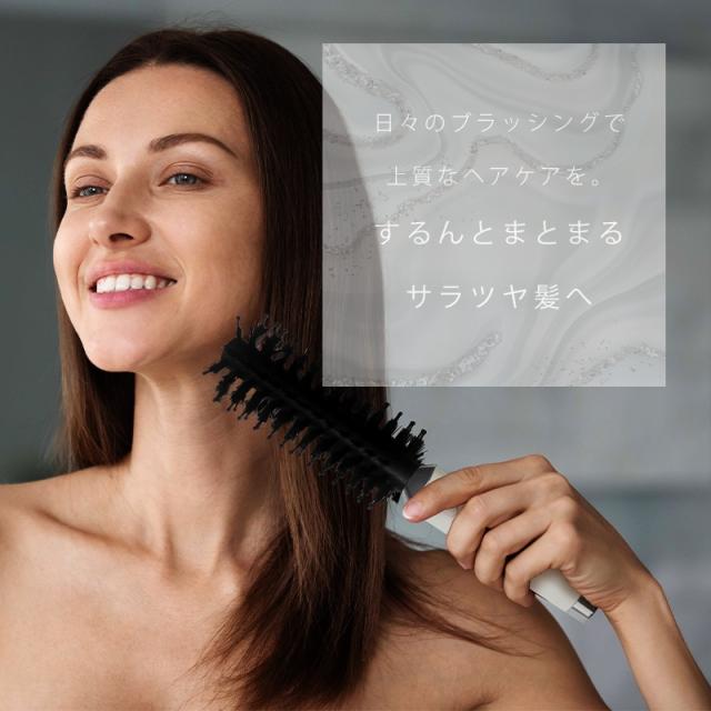 ブラッシングするだけで、まとまる艶髪、簡単ヘアケアのイオンヘアブラシ。